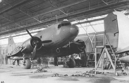 Bijgaande selectie van foto's geeft een beeld van de ombouw van deze miltaire Dakota's (C-47) tot civiele vliegtuigen in de fabriek van Fokker in Amsterdam-Noord. Na he werk worden ze per dekschuit door de Amsterdamse grachten naar Schiphol getransporteerd.