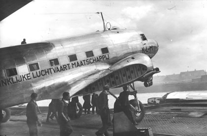 Na de bevrijding in mei 1945 wordt direct een begin gemaakt met de wederopbouw van de luchtvaart in Nederland. Dankzij flink doorwerken kan de luchthaven Schiphol snel weer in bedrijf worden genomen en op 8 juli landt al weer het eerste vliegtuig, een DC-3 Dakota.